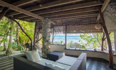 La struttura non ha spiaggia, ma si trova all'ingresso della laguna in una posizione privilegiata per osservare i delfini che giocano fra le onde e le correnti per entrare nell'atollo.