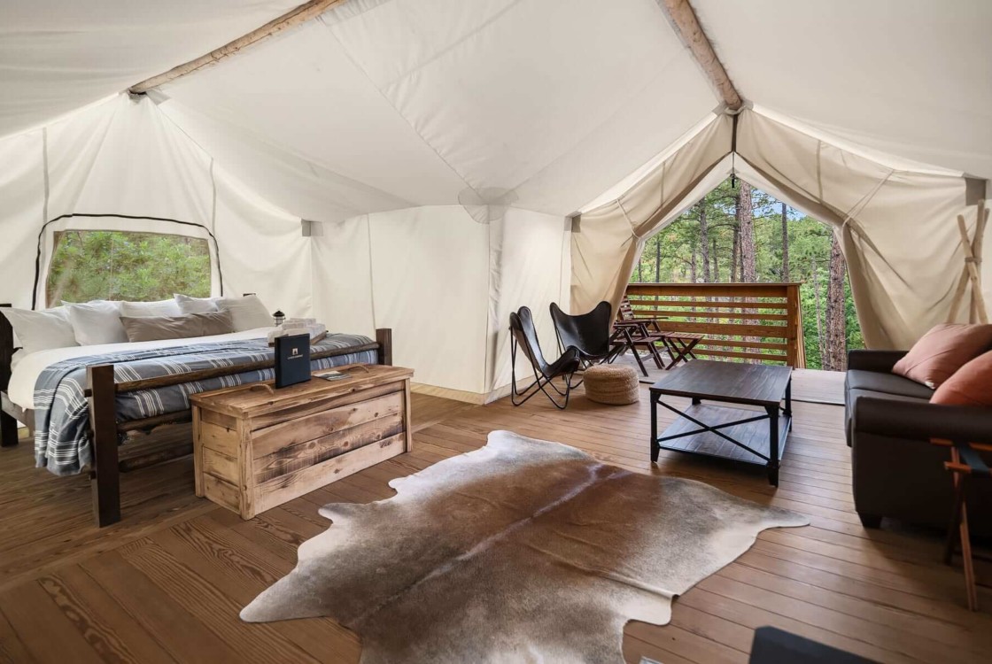 Under Canvas Yosemite si trova su 36 ettari di terreno boschivo e offre sistemazioni glamping esclusive, una tenda nella hall principale con sala da pranzo in stile caffetteria e aree lounge di lusso arredate con lusso da West Elm. Situato a soli 10 minuti dalla stazione principale di Big Oak Flat, ingresso al Parco Nazionale di Yosemite, con una fermata designata del trasporto pubblico YARTS, il nostro primo resort in California è facilmente raggiungibile dalla Bay Area di San Francisco, da Sacramento e dalla California settentrionale. Dormi tra imponenti foreste di querce nere californiane e pini ponderosa e immergiti nella quiete della natura. All’Under Canvas Yosemite, il tuo soggiorno è parte di un’avventura all’aria aperta di lusso!
